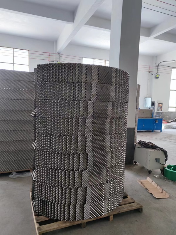 加工填料的塔徑范圍為φ150mm~12000mm以上。它是一種在塔內按均勻幾何圖形排布,整齊堆砌的填料。它規(guī)定了氣液流路,改善了溝流和壁流現象,壓降可以很小,同時卻提供更多的比表面積,在同等容積中可以達到更高的傳質、傳熱效果.還由于結構的均勻、規(guī)則、對稱性,在與散裝填料具有相同的比表面積時,金屬孔板波紋填料的空隙率更大,具有更大的通量,綜合處理能力比板式塔和散裝填料塔大得多,因此以金屬孔板波紋為代表的各種通用型規(guī)整填料在工業(yè)中得到應用。用金屬孔板波紋填料改造板式塔效果尤為明顯。通過精心設計、制造、安裝和認真操作等,可以做到工業(yè)放大效應不明顯。由于規(guī)整填料具有壓降低、通量大、分離效率高等優(yōu)點,在精細化工、香料工業(yè)、煉油、化肥、石油化工等領域的眾多塔器內得到廣泛應用。如在原油油水、油氣、油水汽二相或三相分離器中使用效果良好,獲得用戶的一致好評。
