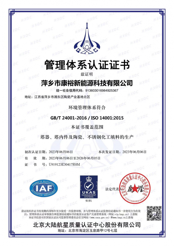 萍鄉(xiāng)市康裕新能源科技有限公司于 2010 年 3 月 18 日注冊(cè)成立,位于萍鄉(xiāng)市湘東區(qū)陶瓷 產(chǎn)業(yè)基地北區(qū),注冊(cè)資金為人民幣一億零八百萬(wàn)元整。公司擁有標(biāo)準(zhǔn)廠房 36000 多平方米, 固定資產(chǎn)八千萬(wàn)元,年產(chǎn)值 1.5 億元。專業(yè)為各大型石油化工企業(yè)提供塔盤(pán)、填料、塔內(nèi)構(gòu)件、玻璃鋼設(shè)備及非標(biāo)壓力容器等設(shè)備。 公司已通過(guò) ISO9001 國(guó)際質(zhì)量體系認(rèn)證,并具備二三類壓力容器的設(shè)計(jì)、二三類壓力容器制造資質(zhì)。此外,公司已成為中石化、中石油、中海油、神華集團(tuán)以及中國(guó)化工集團(tuán)的資源市場(chǎng)成員。